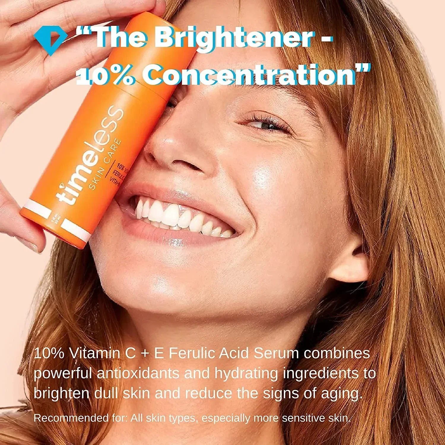 Timeless 30ml Skin Care 10% Vitamin C + E Ferulic Acid Serum Non-Greasy Formula Use Daily to Brighten skin care makeup kit